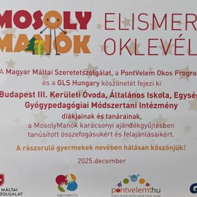 MosolyManók Elismerő oklevél